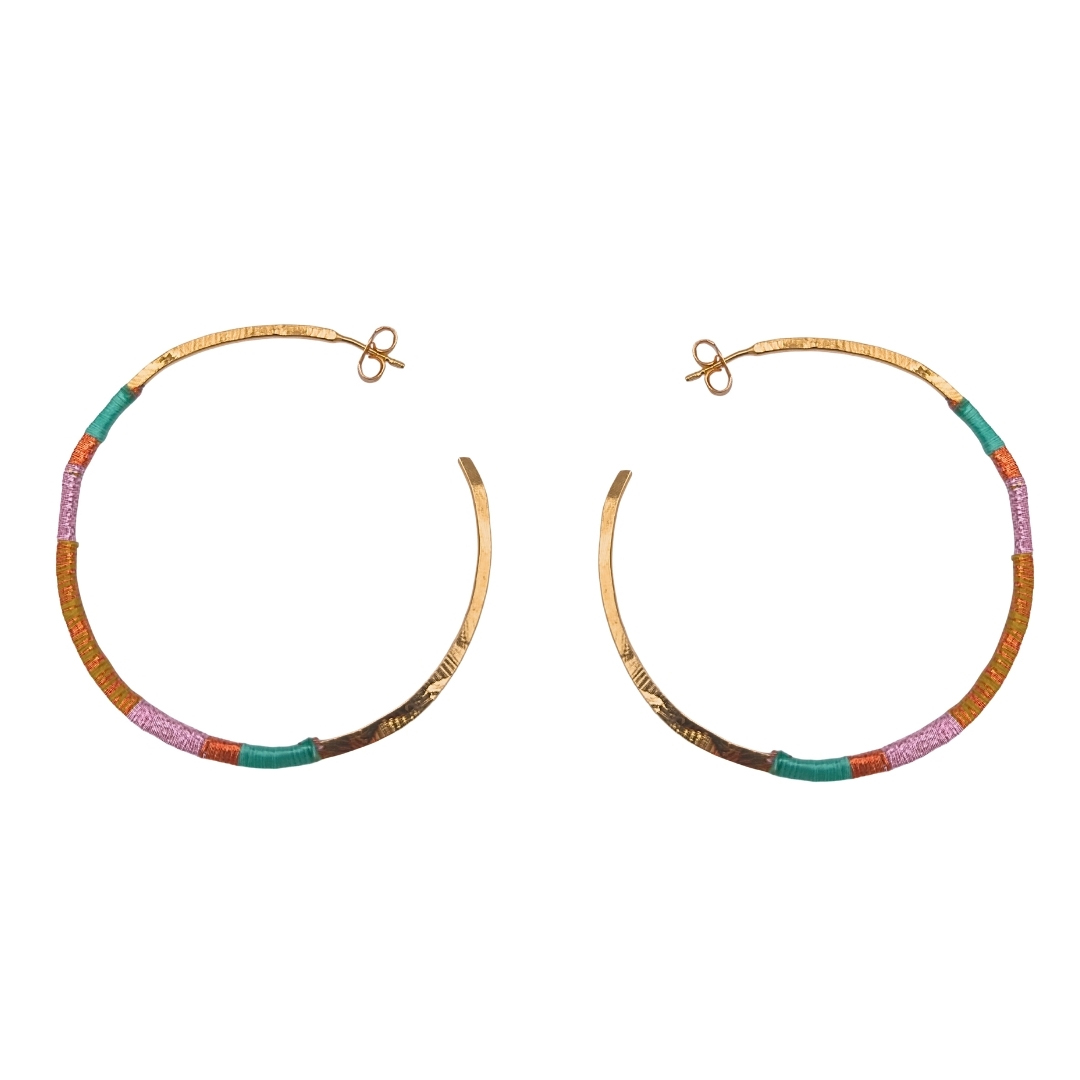 Gold-plated hammered hoop earrings – cotton, polyester