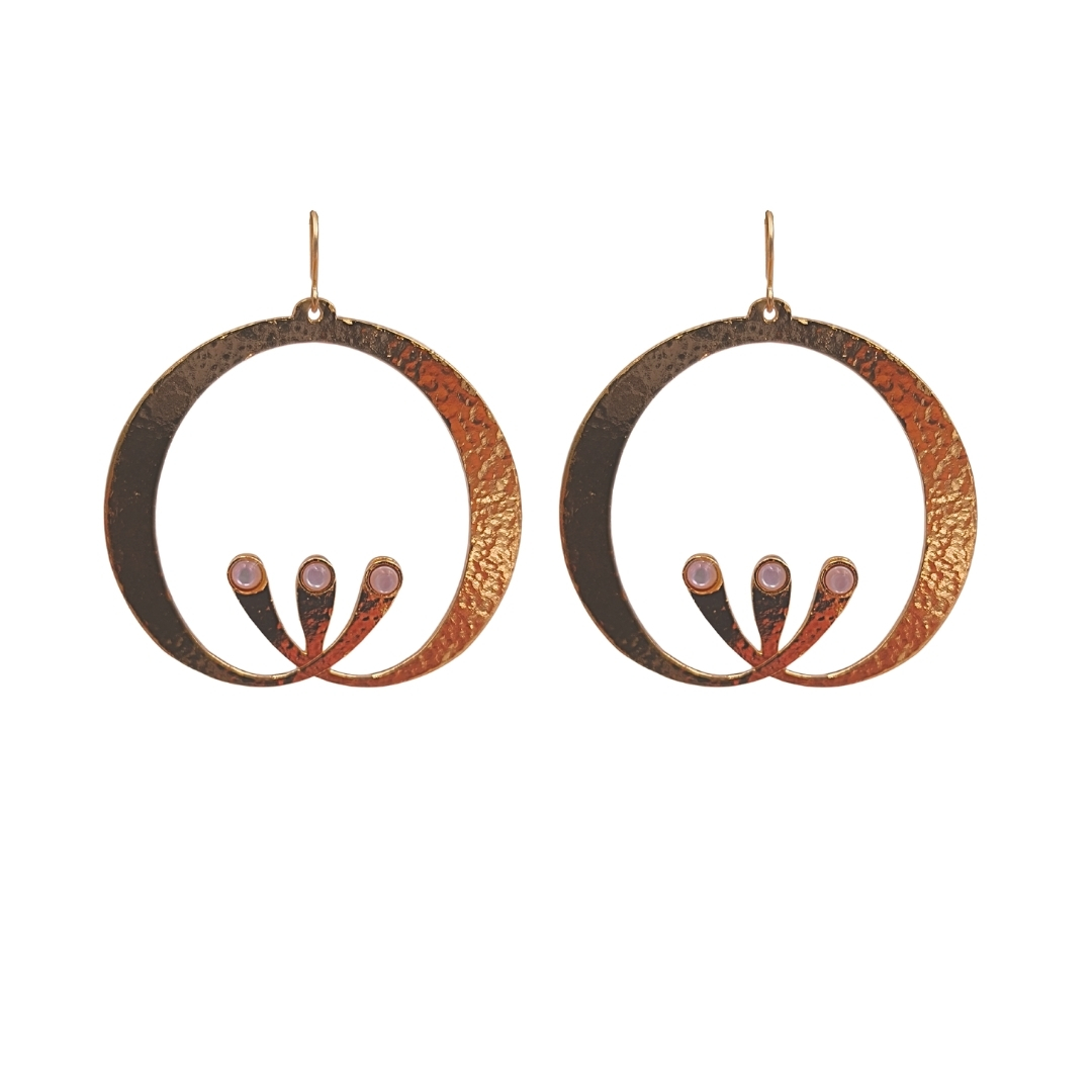 Boucles d’oreilles en étain et laiton doré à l’or fin, nacre rose